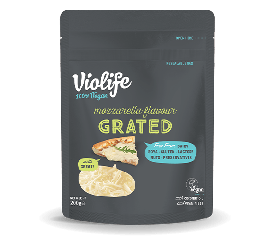 Intenta hacer tu propia pizza usando el rallado de Violife sabor Mozzarella y agrega pure de tomate fresco para la perfecta cena familiar.